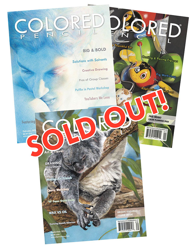 In the September 2023 Issue: Art & Travel, Drawing Shiny Objects, Making Art Friends, Cherry Workshop, “A” Paper Quick Guide, Wax VS Oil, and more. Featuring Danielle Robertson